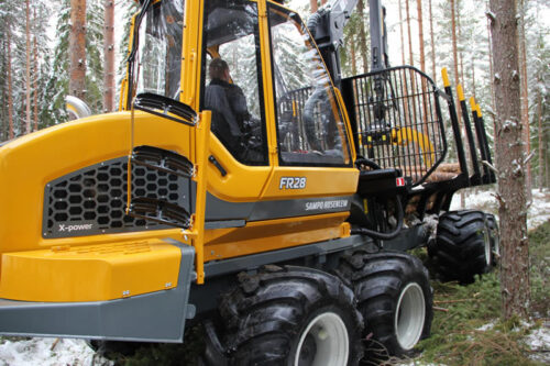 Sampo Rosenlew je odgovorio na zahtjeve kupaca dizajnirajući FR28 FORWARDER, koji je optimiziran za operacije proreda. Ova stroj sa 10 tona nosivosti dizajniran je da upotpuni naše kombajne. Zbog svog malog tereta i visokog ugla upravljanja, F28 je idealan za efikasan transport drveta.