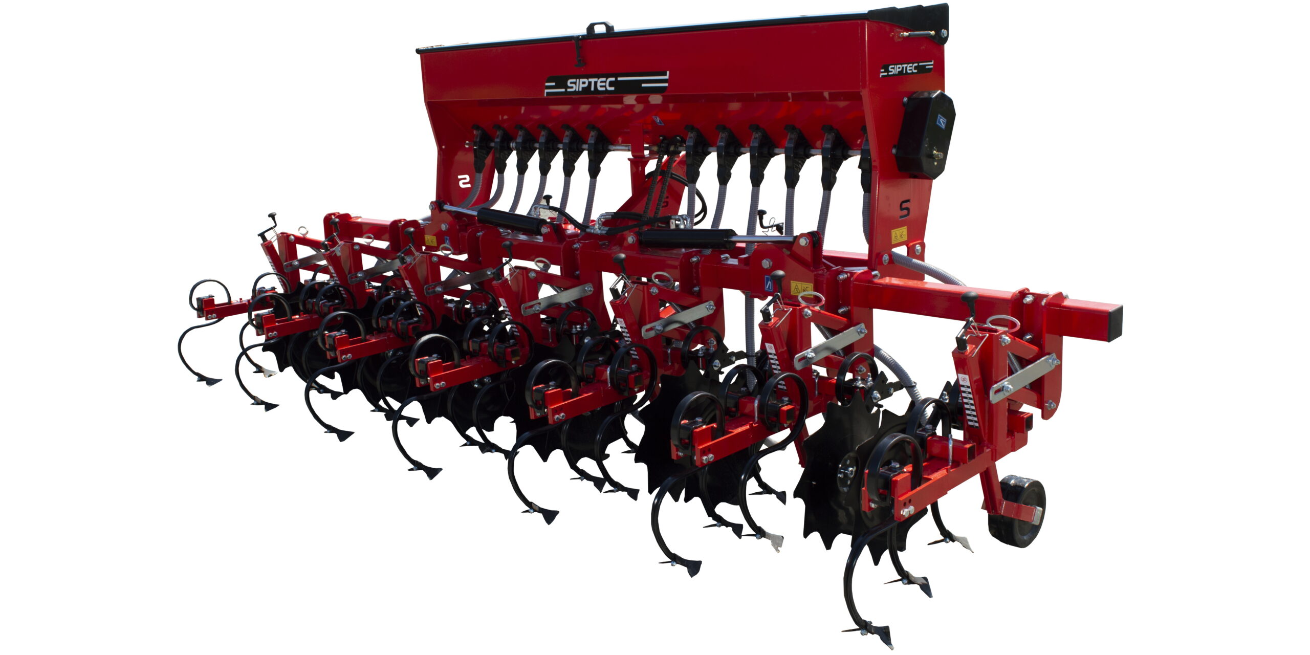 - Trotočkovna kvaka kat. 2 - Robustan kruti okvir 100×100 mm - Visoki razmak od tla 80 cm - Podesiva širina reda - Opružni zupci 32x12 mm - Podesiva utovarna opruga - Čelični potporni kotači s ležajevima - Kotači potpornog okvira - Opcionalni razdjelnik gnojiva